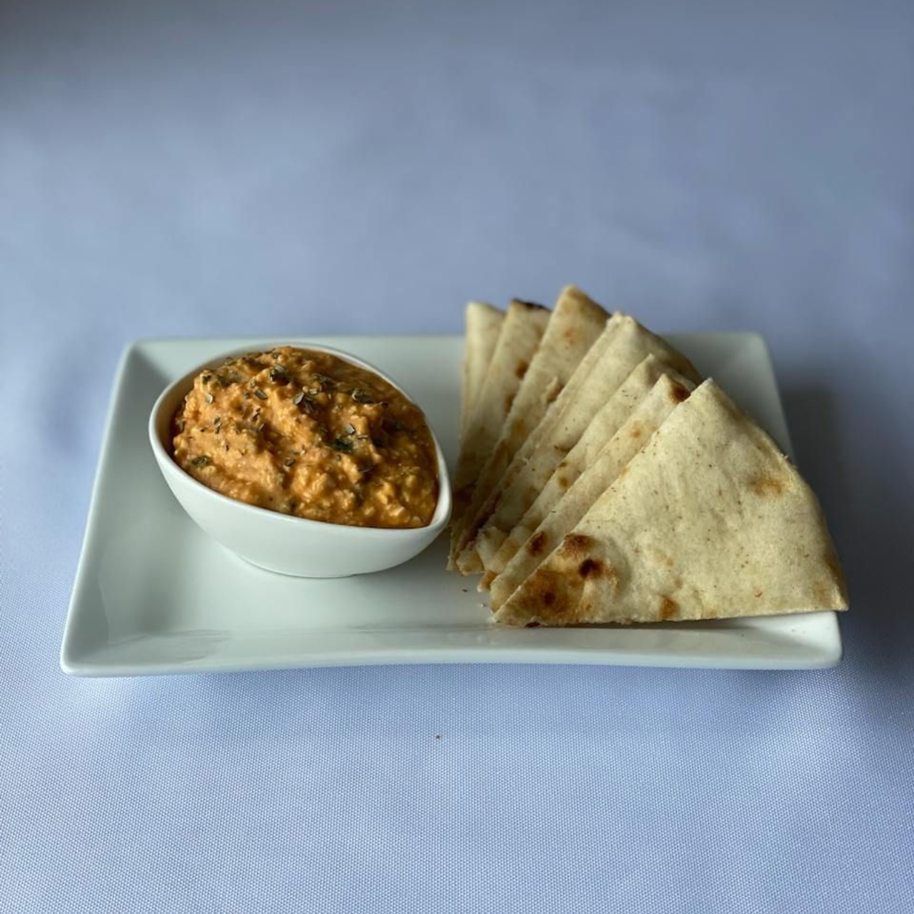 Eggplant pulp, roasted red pepper, white pepper, Greek herbs, olive oil and sea salt.