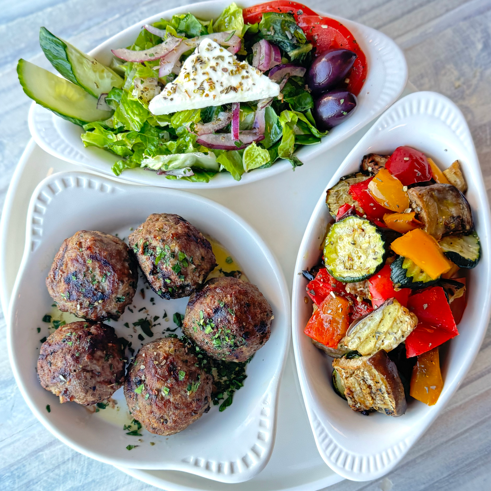 Two 5oz bone-in chops grilled to perfection, served with tzatziki and pita.